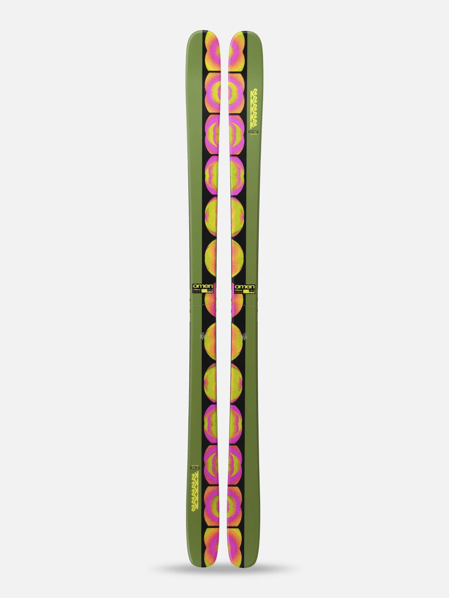 Omen 90 on varustettu K2 Carbon Boost Braid -rakenteella ja Triaxial Braided -ytimillä, jotka lisäävät kestävyyttä ja tarjoavat runsaasti kimmoisuutta. Progressiivinen sivuleikkaus ja All-Terrain Twin Rocker tekevät sukset leikkisiksi ja itsevarmoiksi joka käännöksessä. Omen 90 antaa sinulle reilusti poppia hyppyihin ja vakauden, jota tarvitset syvien alastulojen hallintaan.