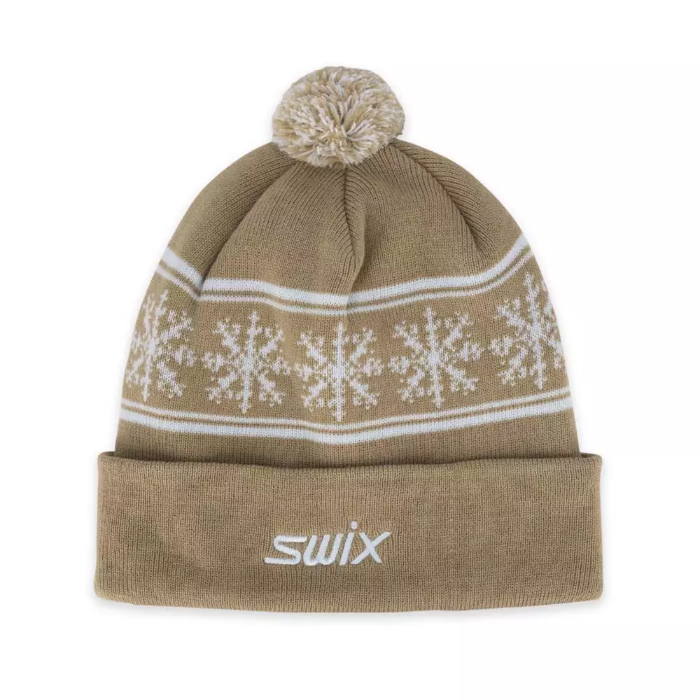Swix Scandi Beanie on lämmin ja mukava kaksinkertainen neulepipo, jossa yhdistyvät pohjoismainen lumihiutalekuosi, käännetty ribbireuna ja tupsu. Pipo istuu napakasti ja tuntuu pehmeältä, joten se toimii yhtä hyvin hiihtolenkeillä kuin rennossa talvikäytössä.